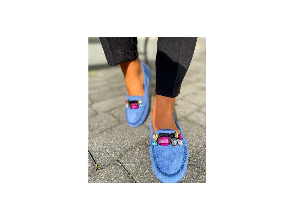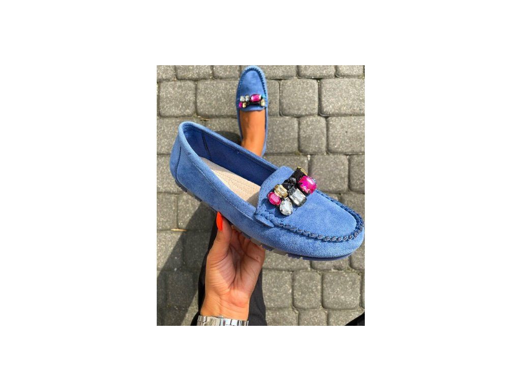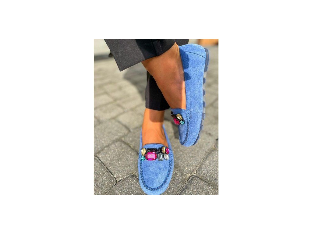 Dámské modré mokasíny s kamínky