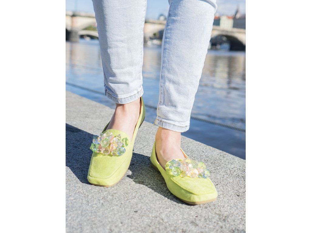 Dámské neonové mokasíny s kamínky