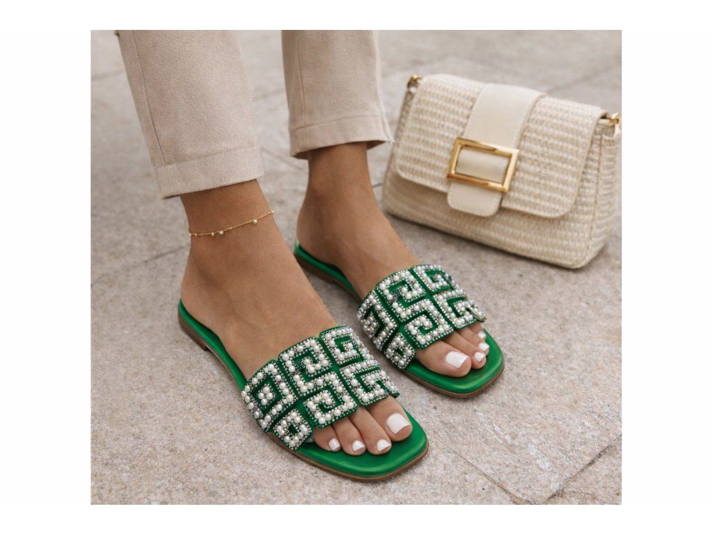 ✨ Elegantní pantofle s perličkami – bílé, zlaté a zelené ✨