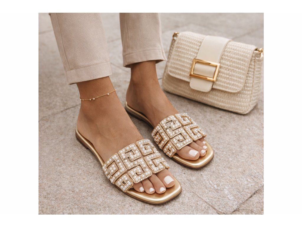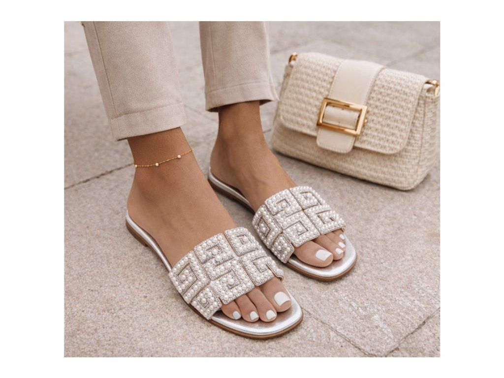 Dodejte svému letnímu outfitu šmrnc! Tyto stylové pantofle s bohatým zdobením z perliček jsou tou pravou volbou pro každou módní nadšenkyni.