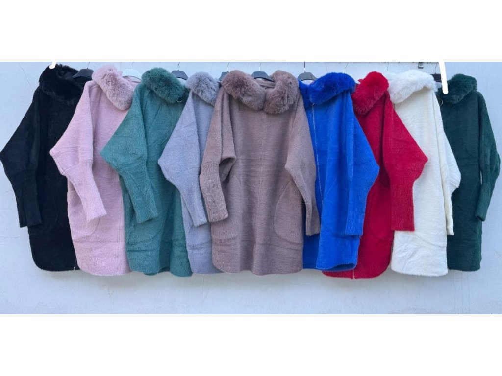 Luxusní dámský kabátek na zip z alpaky s kapucí a kožešinou