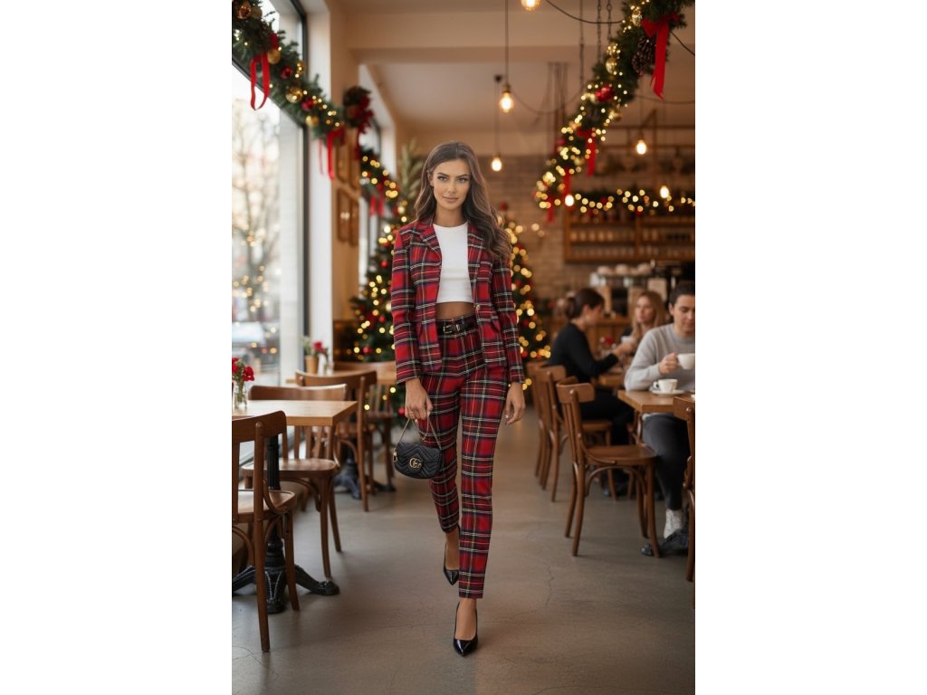 Tento dámský károvaný kostým je stylový, komfortní a výjimečný – přesně tak, jako Vy.