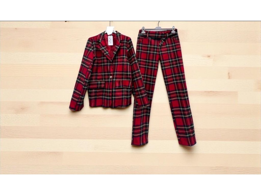 Dámský kostým v károvaném vzoru – sako a kalhoty